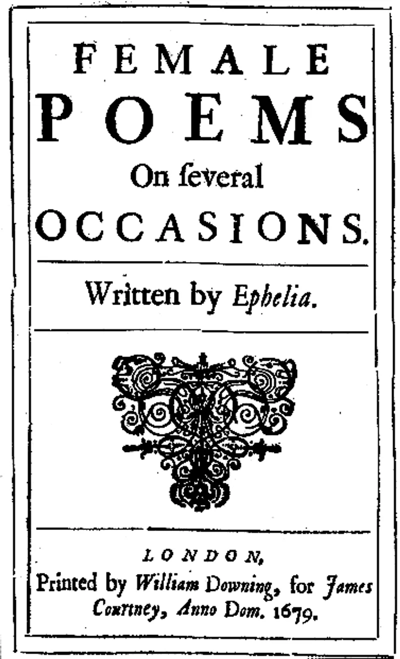 ____, Female Poems On several Occasions. Written by Ephelia (Octavo. With decorative title-page vignette. London: William Downing for James Courtney, 1679).