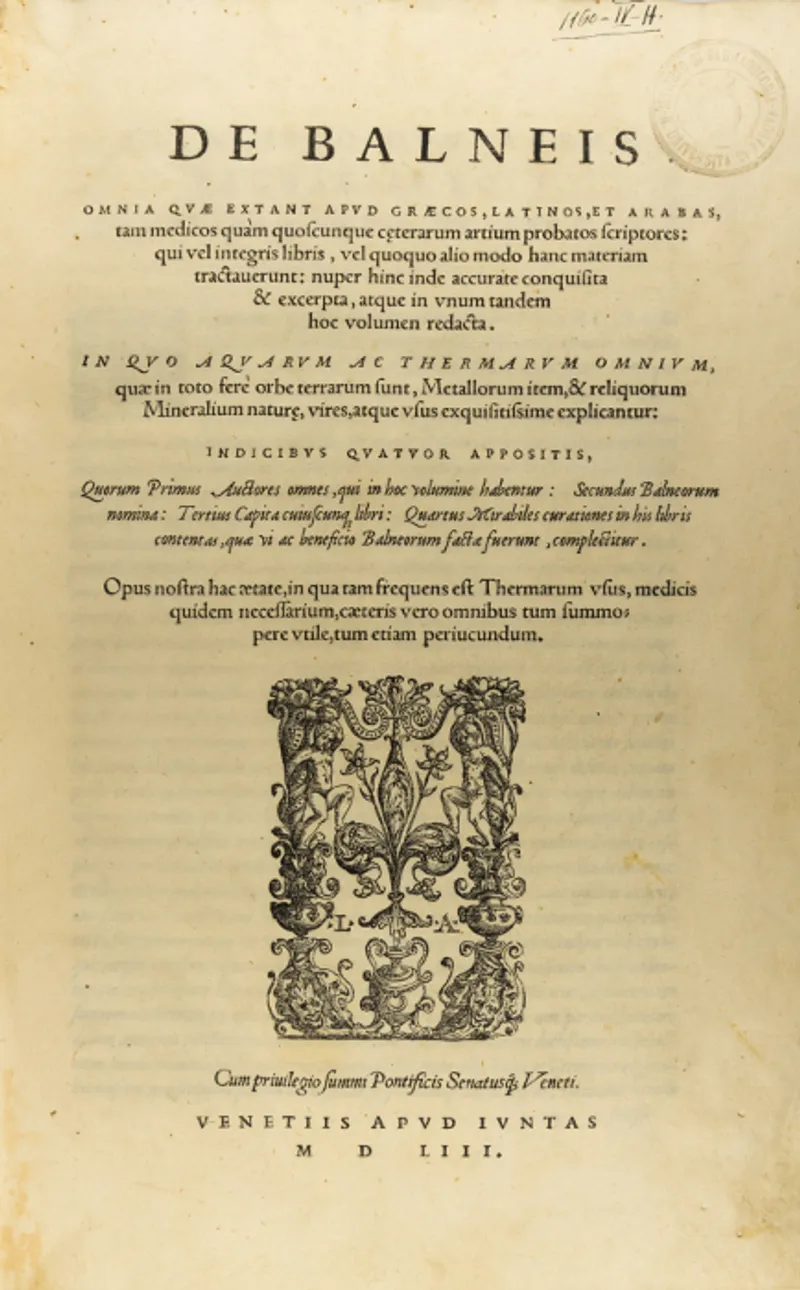 Tomaso Giunta (ed.), De balneis omnia quae extant… (Venice, 1553).