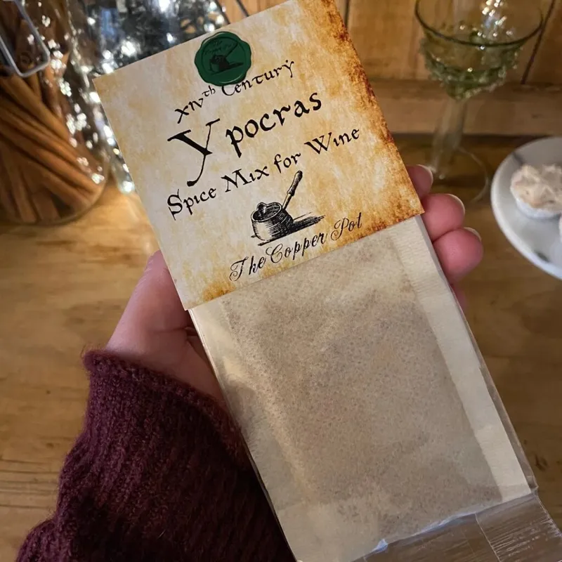 Recipe books often offered readers more than one way of doing something, depending on their budget, skill level, and what ingredients were available to them. As I mentioned, the sweetener was a key social status marker. Early medieval recipes used honey, creating a drink called “claré” or “clarry” (from Latin claratum vinum – clarified wine). As cane sugar became more easily available in Europe – first as an expensive “spice,” later more common by the 15th–16th centuries – it began replacing honey in luxury recipes. Spice merchants even sold ready-made Hypocras spice packets – the medieval equivalent of those pre-mixed mulling spices we see at Christmas markets today. This commercialisation shows how popular the drink had become.